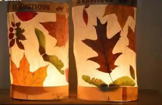 手工材料:树叶、烘培纸、胶水、订书机。操作很简单,小朋友可以独立完成。这么美丽的灯笼还是第一次见到,太有创意了!