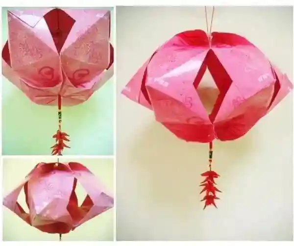 当然,还可以将底部用额外的一个五边形封住,这个时候做灯泡悬挂的灯笼使用,一样很好看哦!