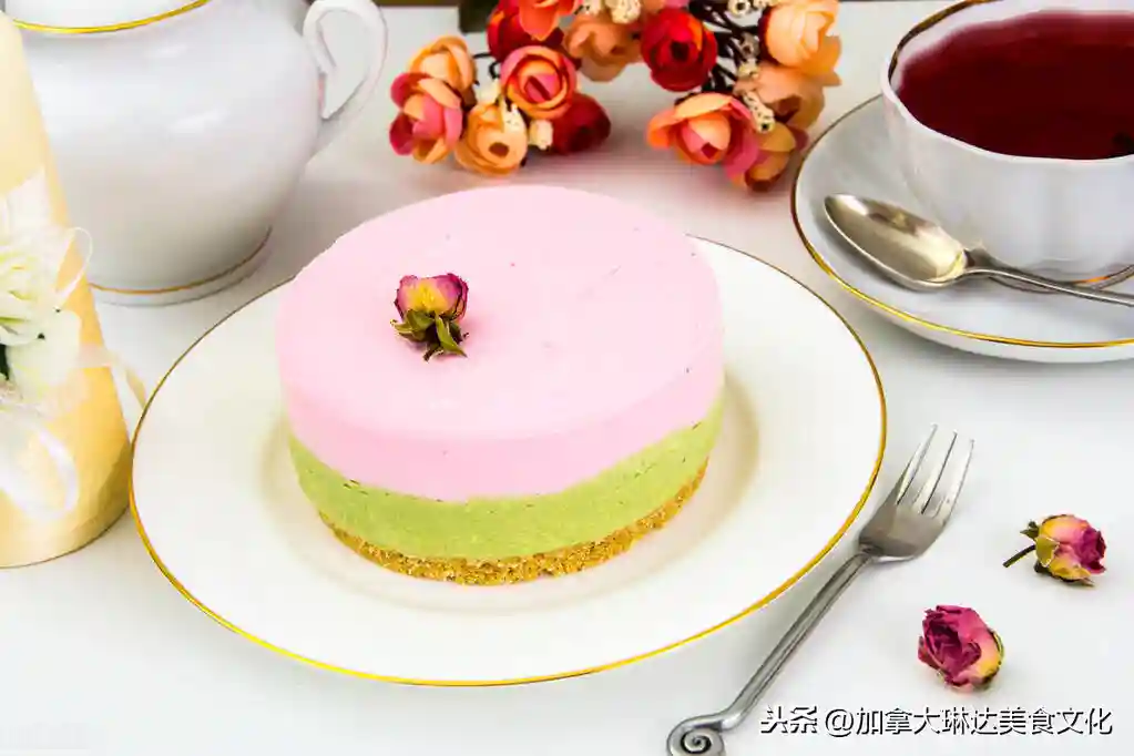 这样一个精致的9寸轻乳酪芝士蛋糕就做好了!切蛋糕时要用开水搅烫一下刀子再切,这样切开的蛋糕才整齐漂亮。