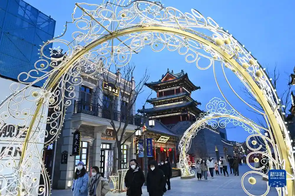 游人在太原市钟楼街游览(2023年1月16日摄)。新华社记者詹彦摄