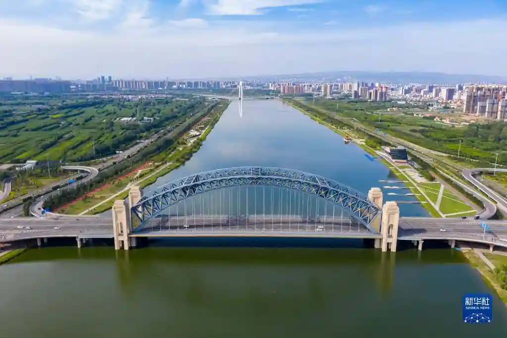 这是2023年6月27日拍摄的太原市汾河(无人机照片)。新华社记者杨晨光摄