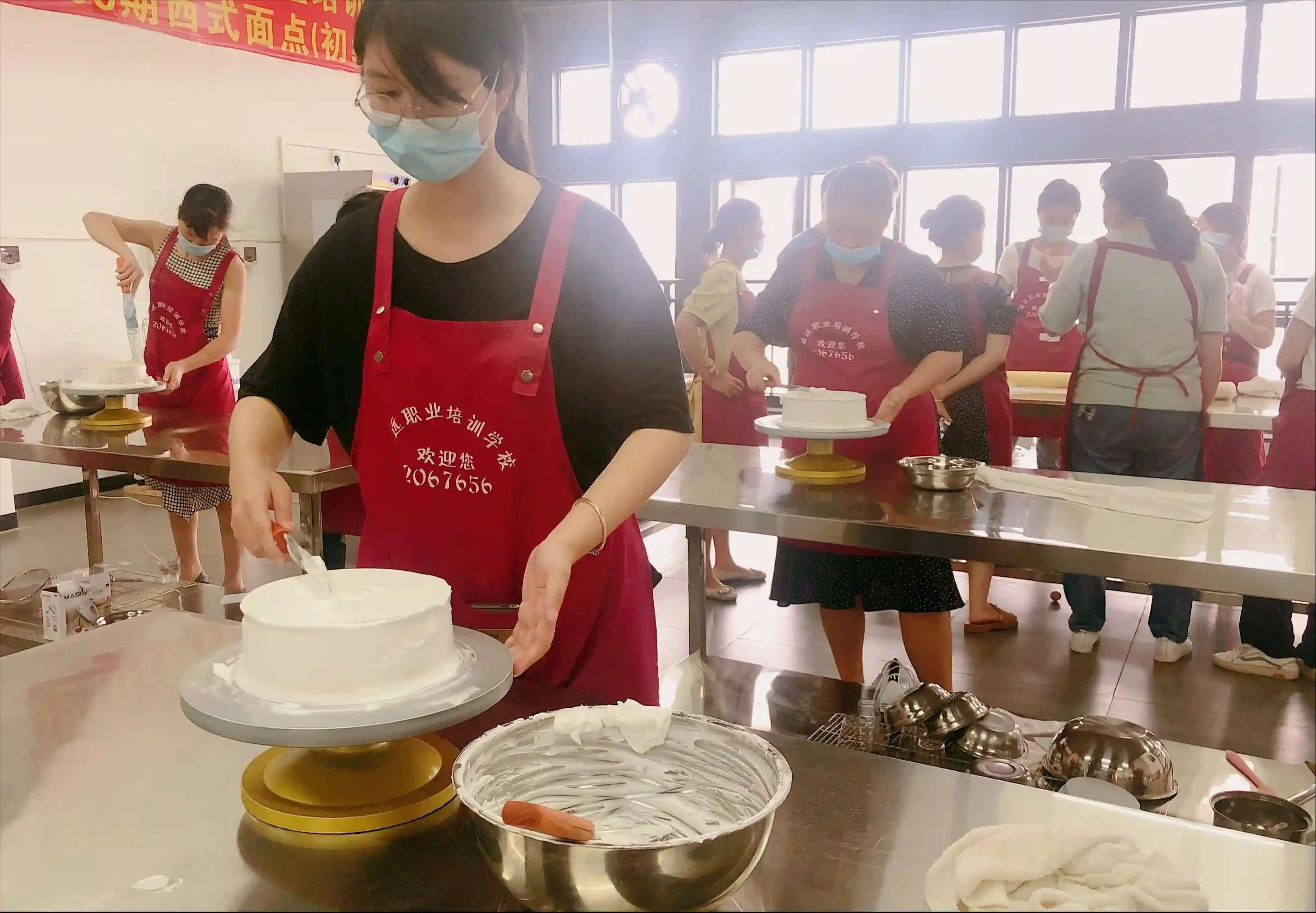 我们的西点老师是外地请来的高级技师,老师特别专业也特别耐心。一起学习的同学有像我这样从没接触过的新手,也有稍微有点经验的全职妈妈,对于我们提出的疑问老师都给予了细致的回答。