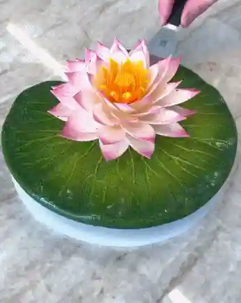 一个造型上无可挑剔的荷花蛋糕就完成啦!