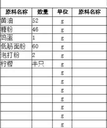 首先我们先来了看一些所有的原材料和用量: