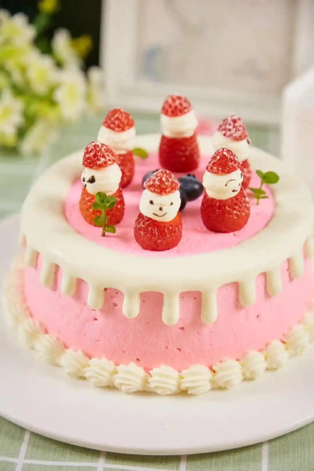 细腻柔软的草莓蛋糕,外层奶油如雪一般融化铺在蛋糕上,沿着表面缓缓流动滴落下来,纷飞雪花般的糖霜洒在蛋糕上,美得就像活在童话故事里,少女心爆棚,好看到尖叫!
