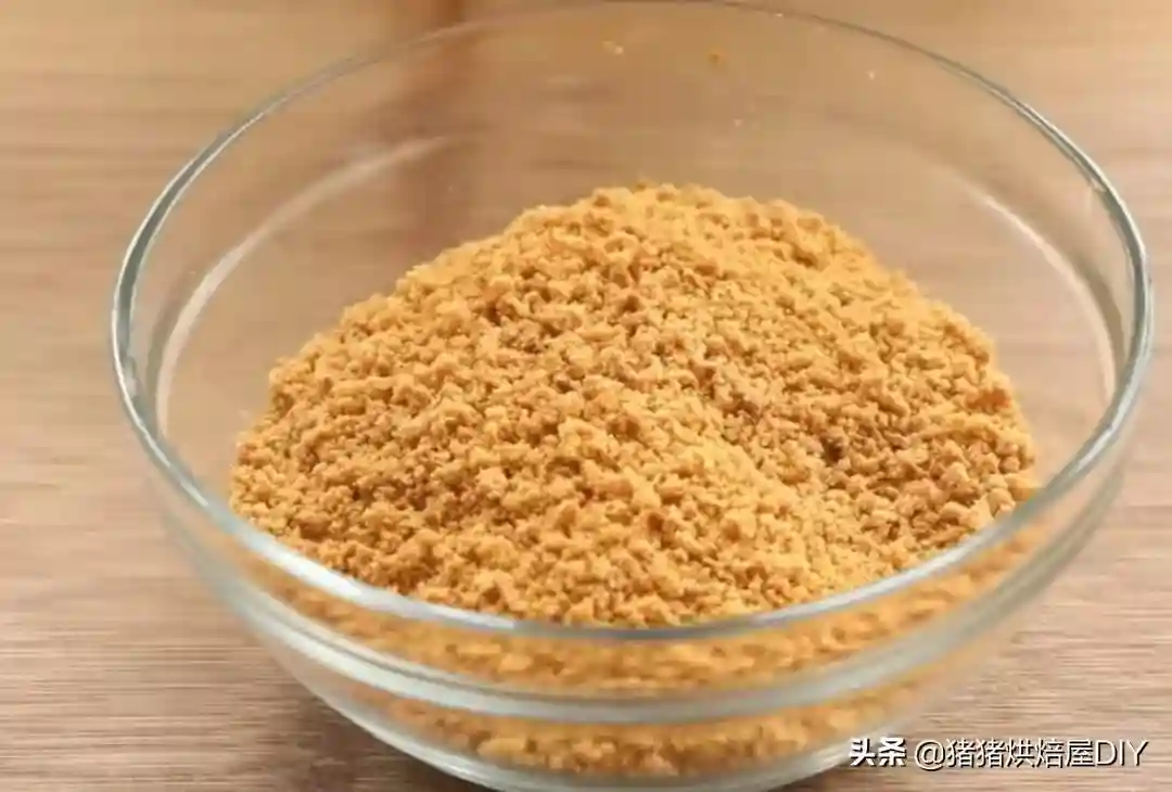 1.用擀面棍将消化饼干压碎,放到一个容器中。