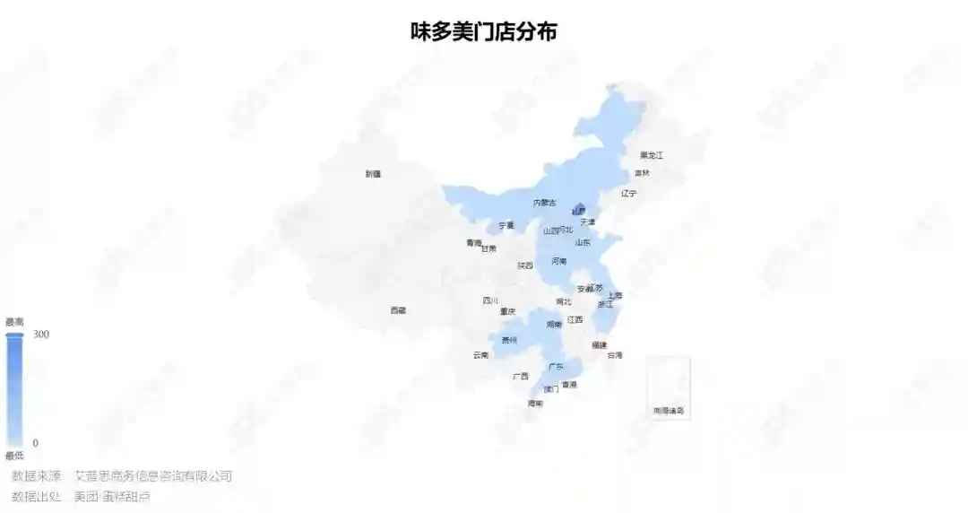 目前味多美的的门店主要集中在北京(280家)和上海(80家),该品牌要想进一步抢占市场,仍需积极布局其他省市,可选择销售指数较高且门店密度较低的城市入驻,如成都、重庆、石家庄等。
