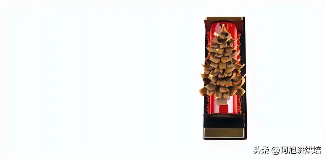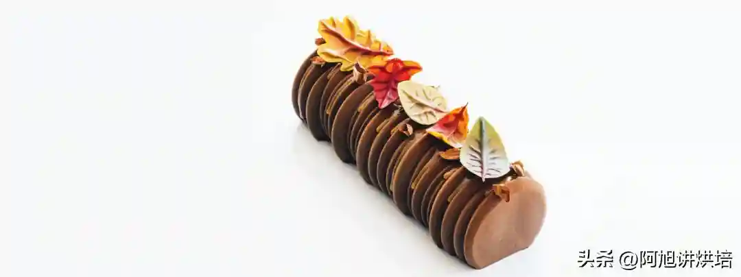 4、降温至35℃左右时,淋在脱模的劈柴慕斯上。