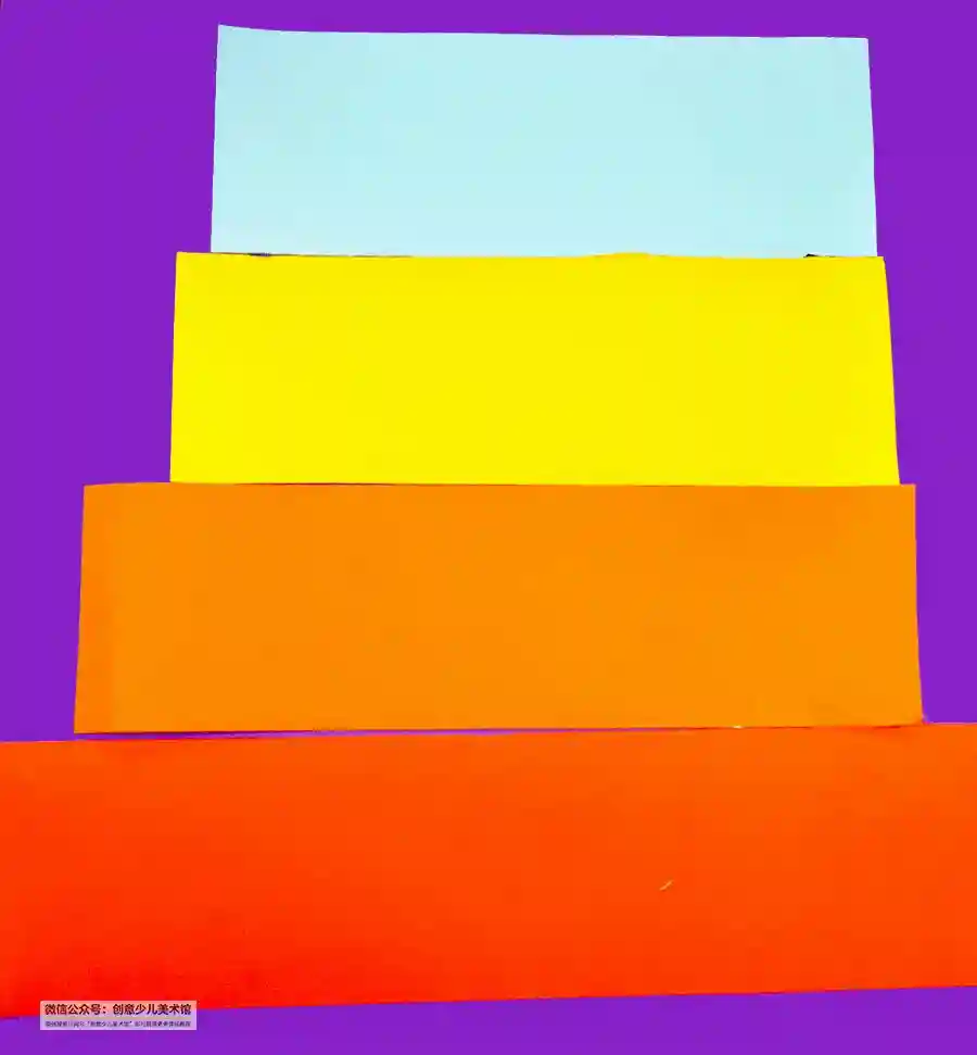 将彩色卡纸按长短粘贴在紫色卡纸上