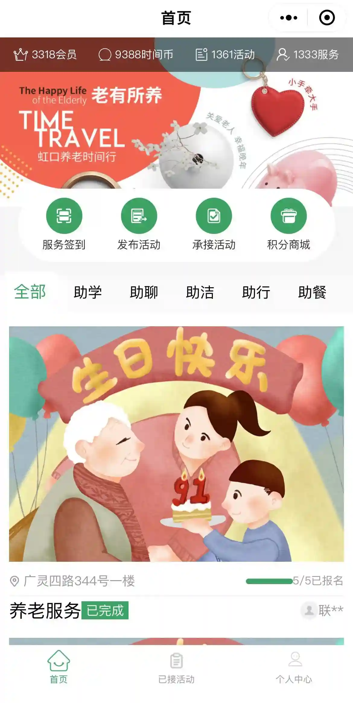 在用户招募上,刘青想到,社区本就有三个为老服务的社会组织,分别针对孤老、优抚老人和失独老人,提供陪聊、陪诊、陪过生日、上门慰问等服务。他找来了三个社会组织的一百多名志愿者,“我说你们的志愿工作还是和以前一样做,但是从今天开始,每做一次,都要被记录到系统里来。”