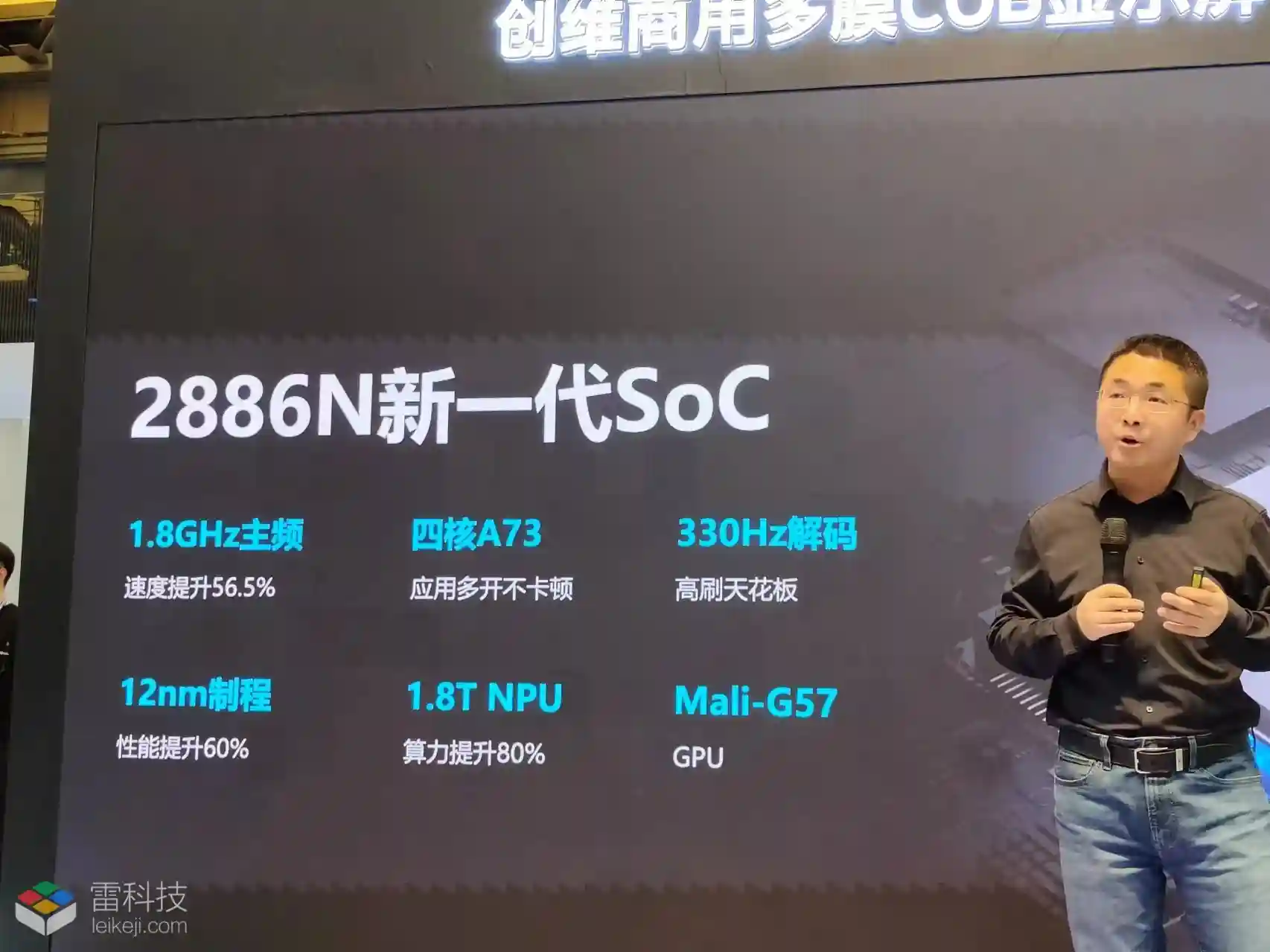 主芯片方面,创维A5DPro配备了2886N。这款SoCCPU部分用了4颗A73,主频1.8Ghz,在电视上称得上高性能了。它的GPU为Mali-G57,NPU的算力达到了1.8T。
