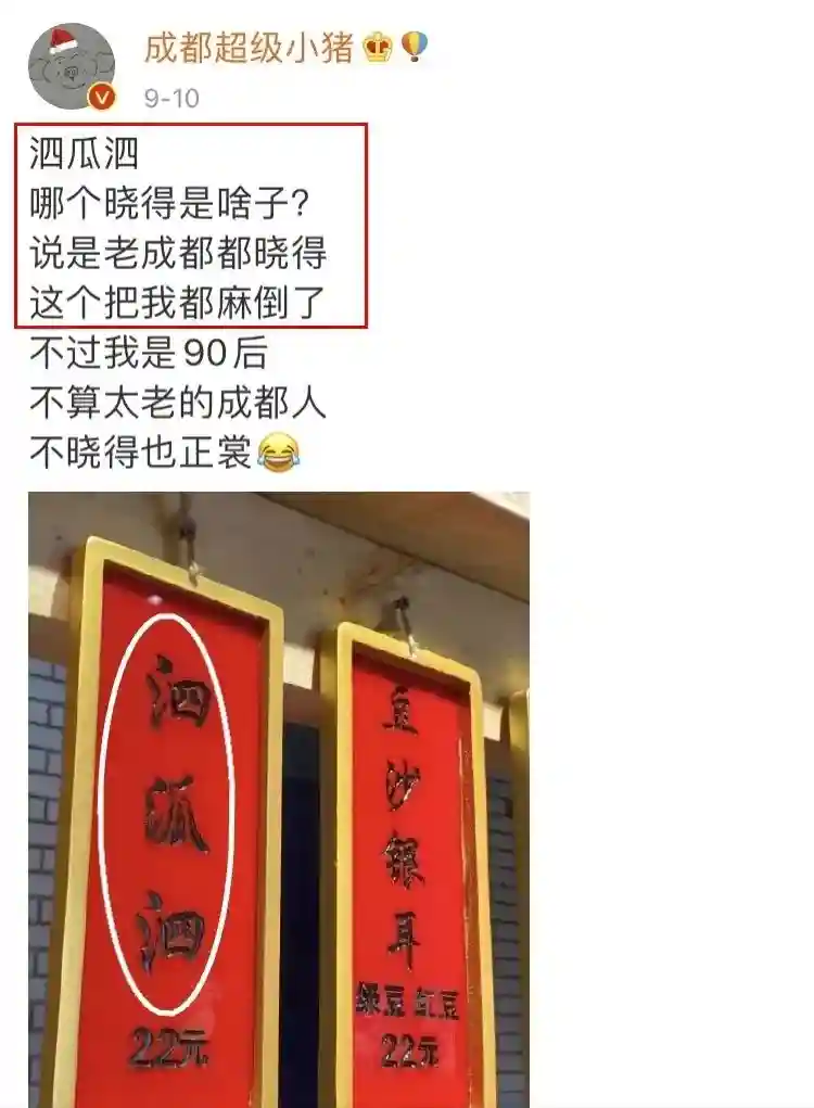 美食博主@成都超级小猪前几天在网上发出”灵魂拷问“:“泗瓜泗,哪个晓得是啥子?说是老成都都晓得。”