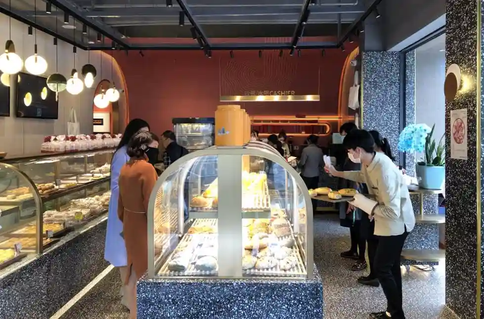 开放式档口,能看到师傅们烘培点心、面包的过程,让人放心。