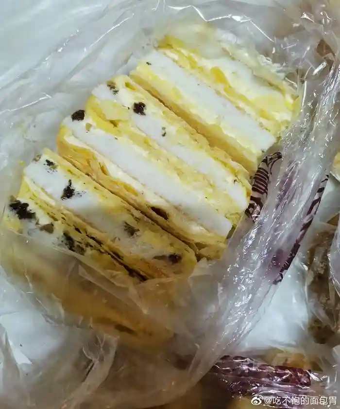 厚厚的酥皮夹着软糯的葡萄干蛋糕