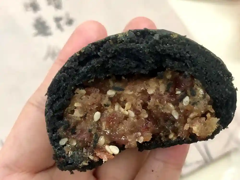 杜甫饼是成都元素饼饼里卖得最好的。黑色的看起像煤球