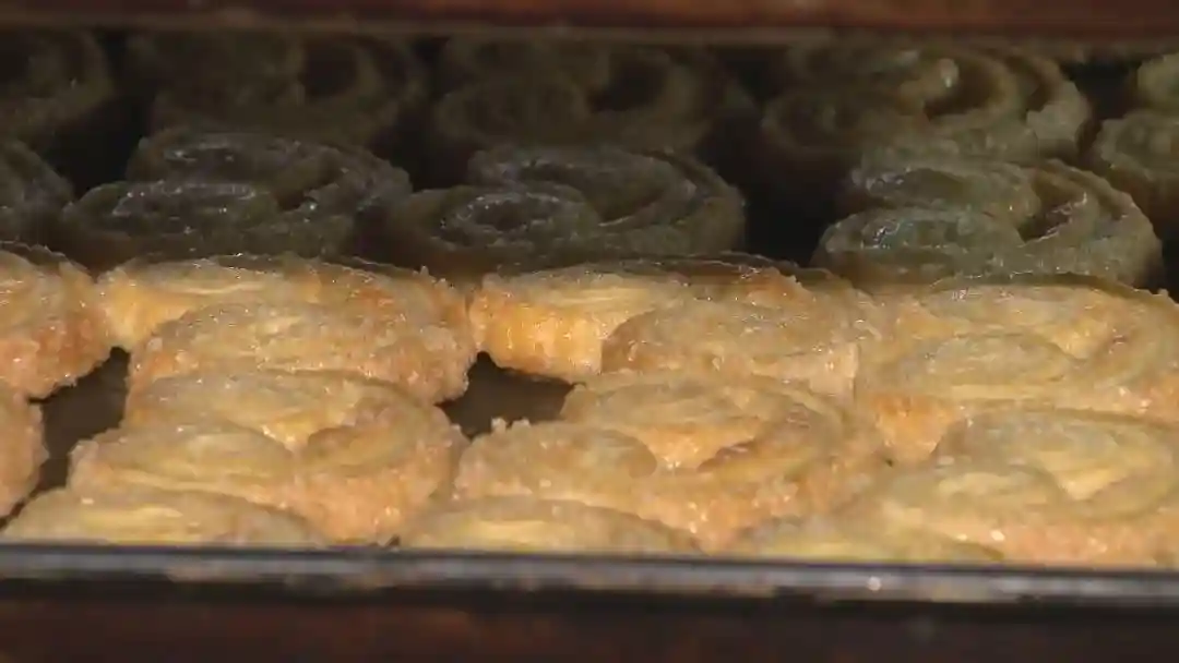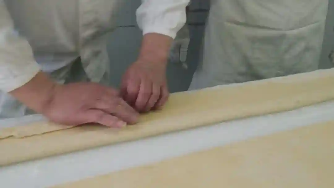 徐师傅告诉记者,现在带了两个徒弟,都是“80后”。“还是这样,慢点好了。”“滚筒一定要滚出来,要滚到面的外面,这样当中与旁边都是一样厚薄的,这样做出来的蝴蝶酥就不会散掉。一定要厚薄一样,不能差一点点,这都是细节上面的东西。”徒弟王绍卿告诉记者,自己本来动手能力弱,学东西也比较慢,但是师傅总是一遍一遍不厌其烦、毫无保留地把自己的经验和技术传授给自己,觉得真的很幸运,能够遇到这样好的师傅。