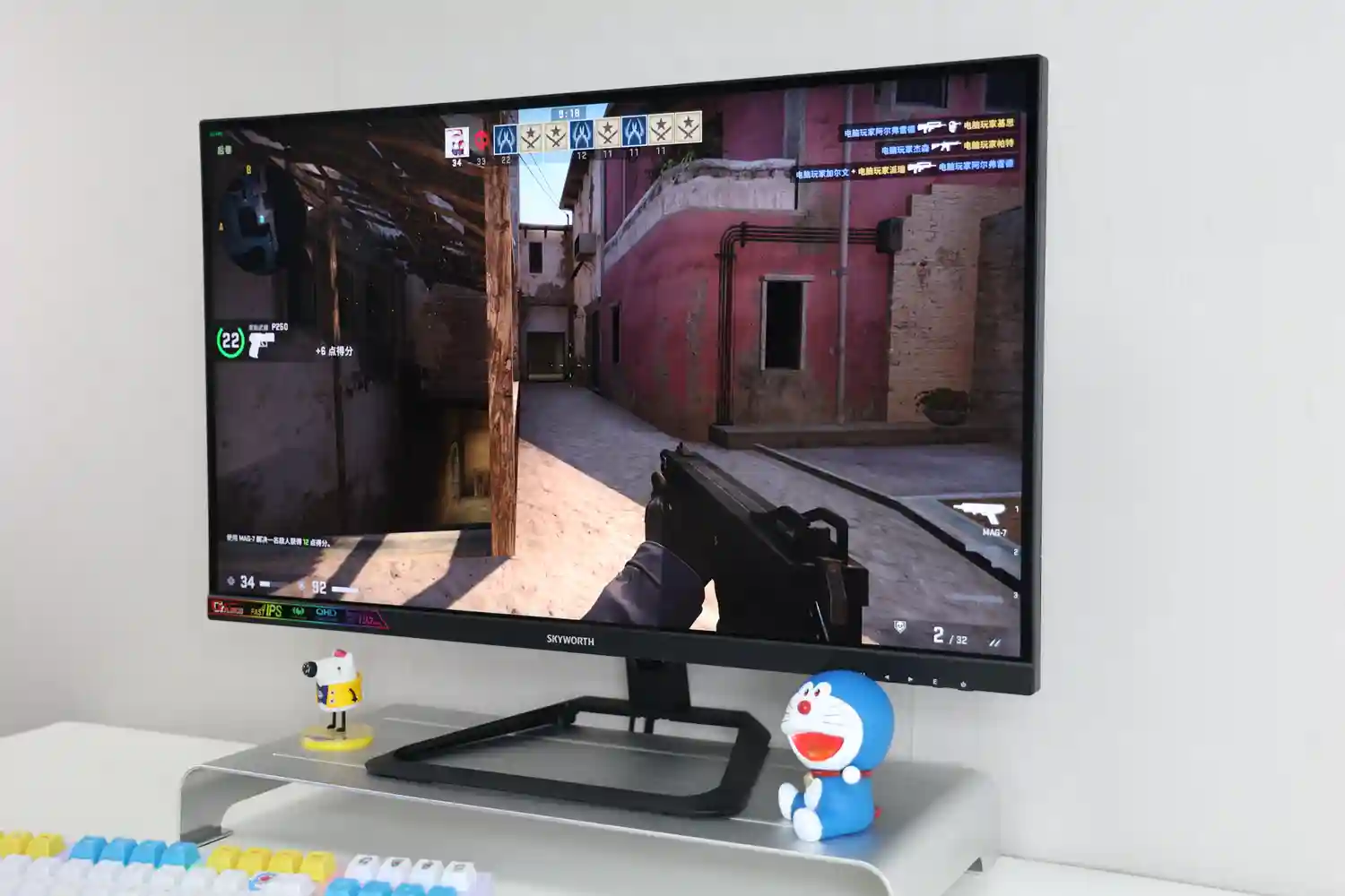 Tips:你如果选择购买创维F27G4Q,那你一定要买一个第三方的VESA支架臂或者桌面增高架,因为默认情况下丐武士的屏幕下沿距离桌面只有8cm,实在太矮了,如果你不想办法增高,长期使用脖子会很累。再不济垫几本书也是可行的。