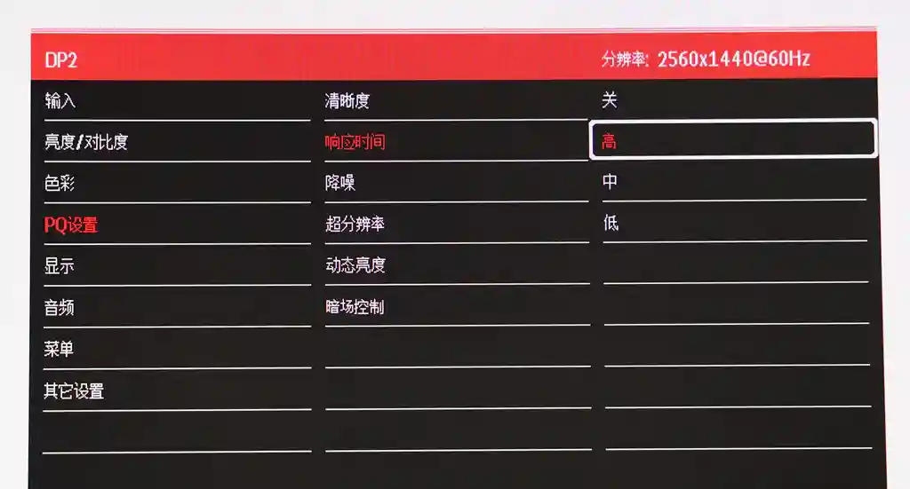 ▲丐武士在OSD菜单中关于加快响应速度提供了4种选项,对应不同的OD加压程度。
