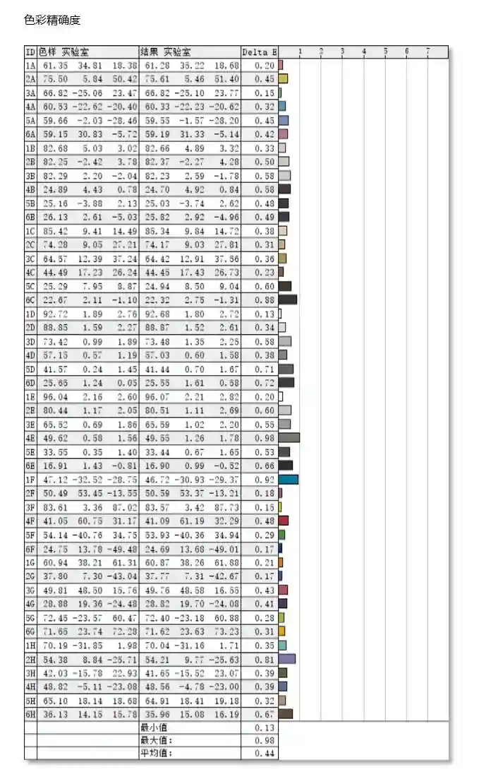 丐武士的色准表现令人惊讶,平均色差△E=0.44,最大差值甚至只有0.98,连1都没跨过去。这个色准表现已经超过了带校色报告的黑武士,虽然黑武士也很准,但丐武士更胜一筹。毫无疑问,创维给丐武士也做过严密精准的出厂校色,但是没有带上那一纸校色报告,逼格一下子没了。