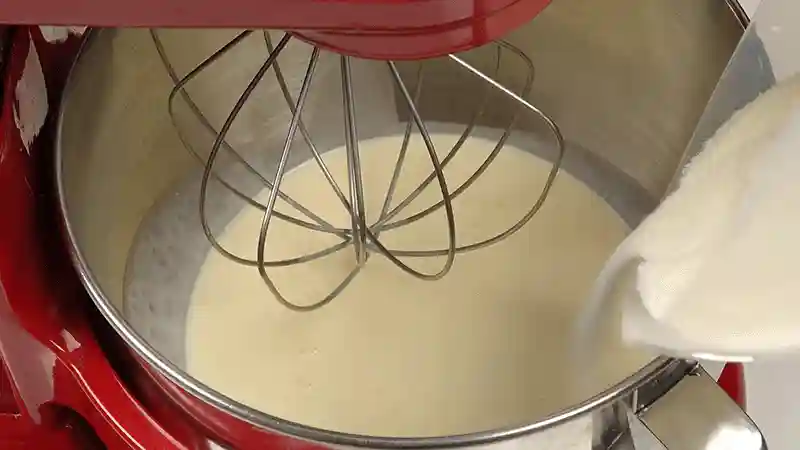 康沛多马斯卡波芝士味预混粉和淡奶油打发,冷藏备用;