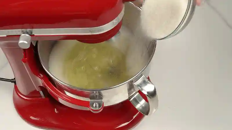 *砂糖分次加入,且需注意要打到盆边和盆底,保证全部蛋白打至蓬松发泡,否则容易造成泡液分离。