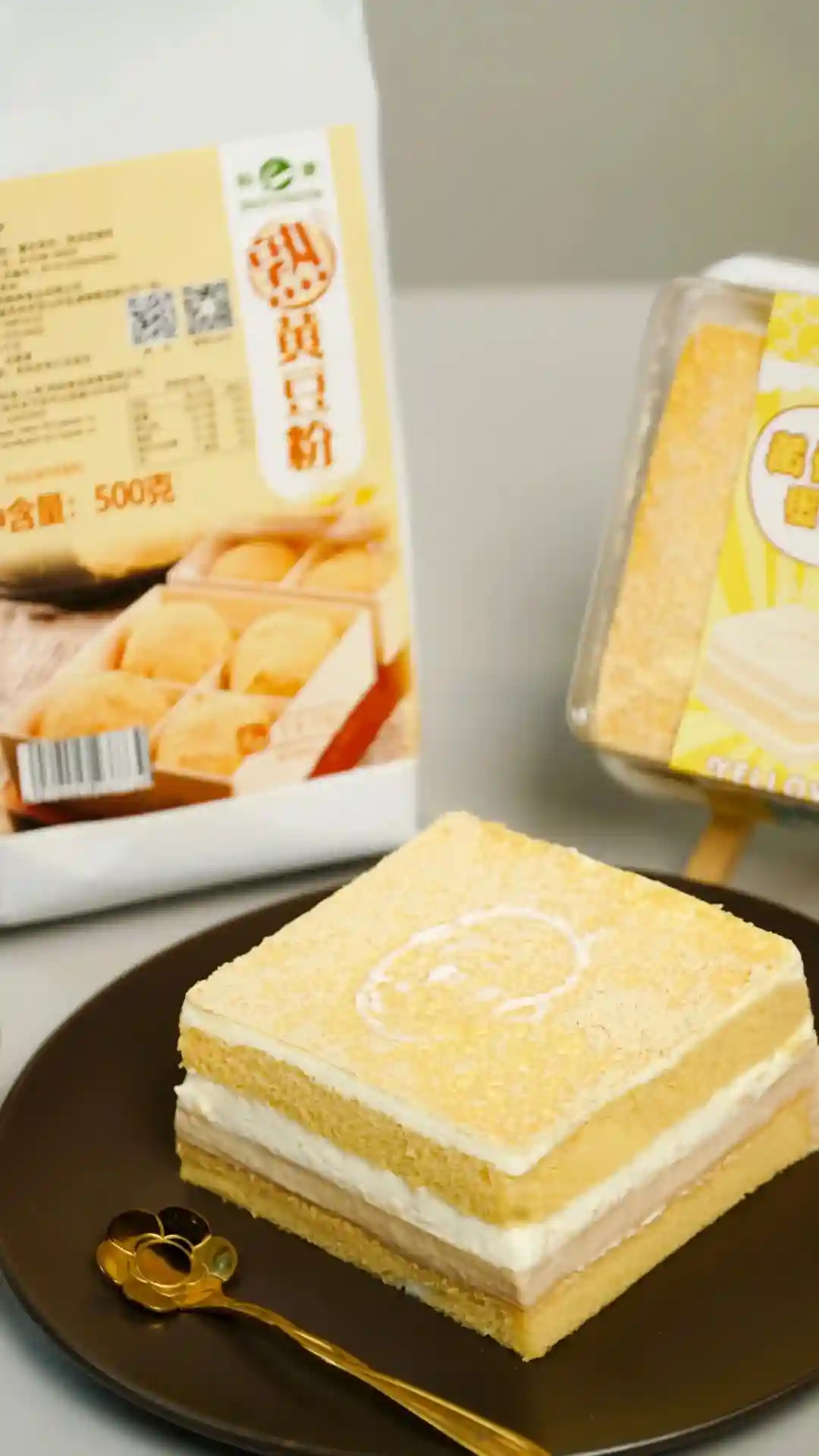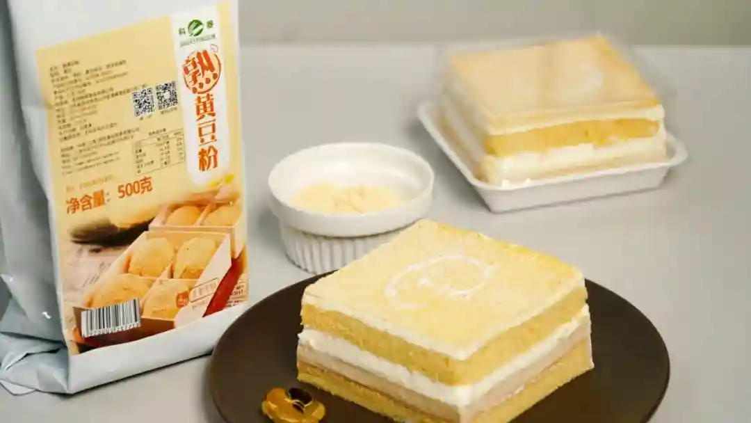 小欧本次就教大家做一款以黄豆粉为主要原料的豆乳产品:黄豆腐蛋糕。
