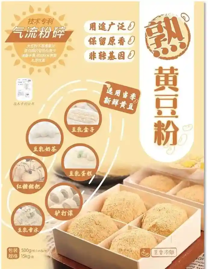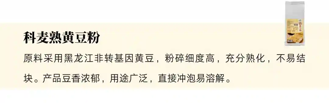 黄豆粉,一直是豆乳产品的重要原料部分。除了可以撒粉,黄豆粉还可用于奶冻、灌馅等形式进行产品制作,以清甜又醇厚的滋味在秋冬时节牢牢吸引着众多年轻人。