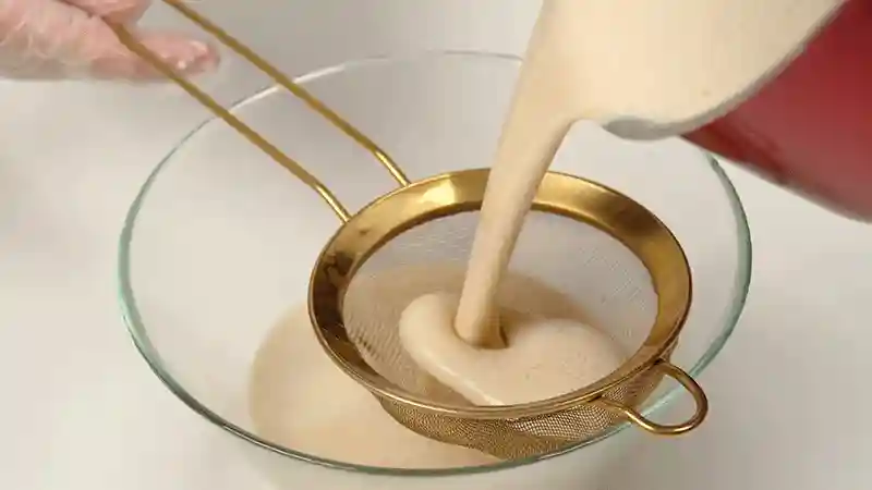 加入吉利丁冻,搅拌均匀,过筛后备用;