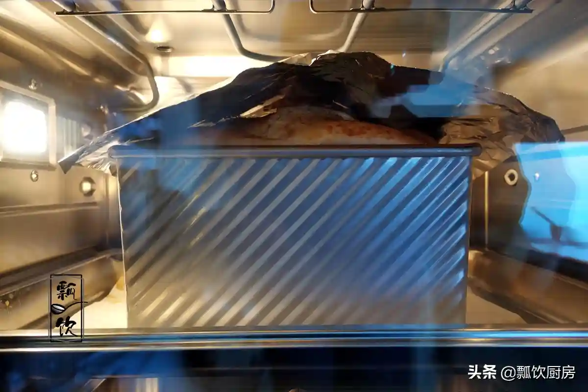 面包的烤制,并不是表面上色好了就是烤熟了,因为不同面包,高度不一样,离加热管的高度也不同,尤其是比较高的吐司面包,上面会离烤箱上管很近,在烤到10几分钟的时候,上面颜色就会达到满意的程度,需要加盖锡纸防上表皮糊掉。