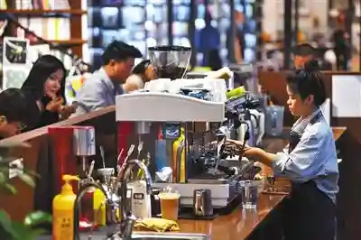 三联韬奋书店三里屯店里水吧提供咖啡、茶等饮品。新京报记者李木易摄