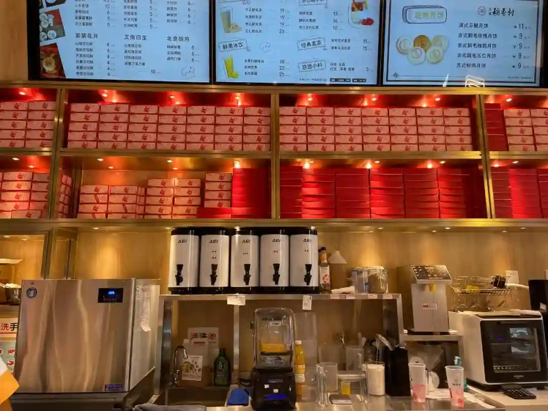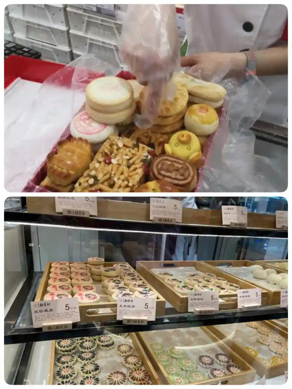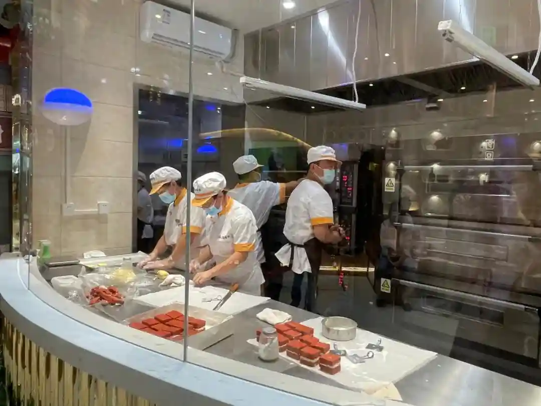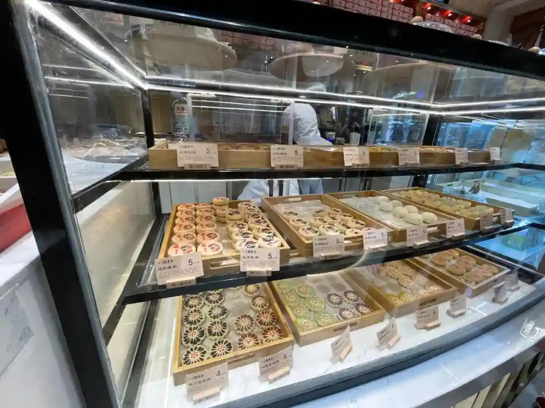 最突出的特色是“明档制作区”,在这里你可以看到许多现场制作的糕点,如新鲜制作的中式点心和新鲜出炉的月饼。