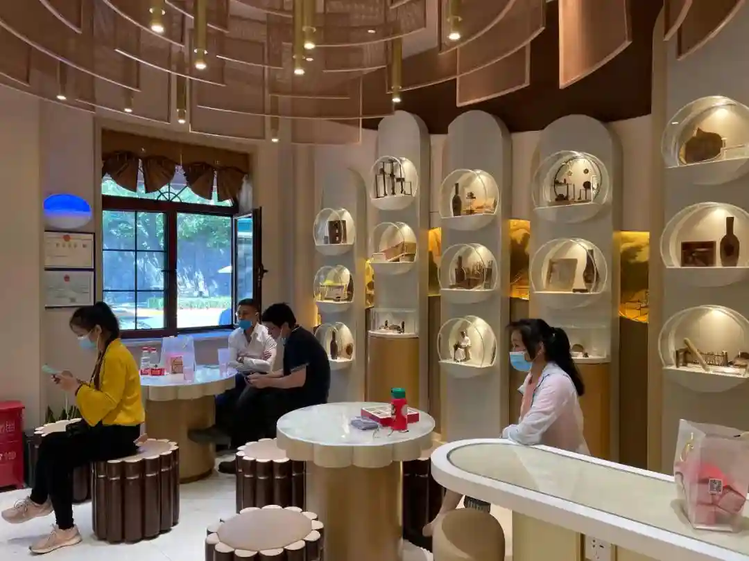 此外,零号店还增设了堂食休闲区,进门左侧是现代休闲区,牛舌饼造型的桌椅,枣花饼造型的抱枕,非常适合年轻人的下午茶用餐场景。