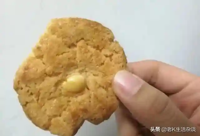 小桃酥,拿在手里稍微一用劲儿就掉渣了,和点缀的果仁一起,入口又酥又香润,回味起来还带一点甜味!