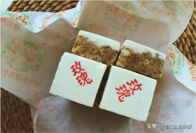 玫瑰糕的味道有点像绿豆糕,多了底层的果仁皮,口感更丰富,上层糖沙沙的入口即化,下层微脆有咀嚼感。不过这是桂顺斋最甜的点心,大家不要多吃~