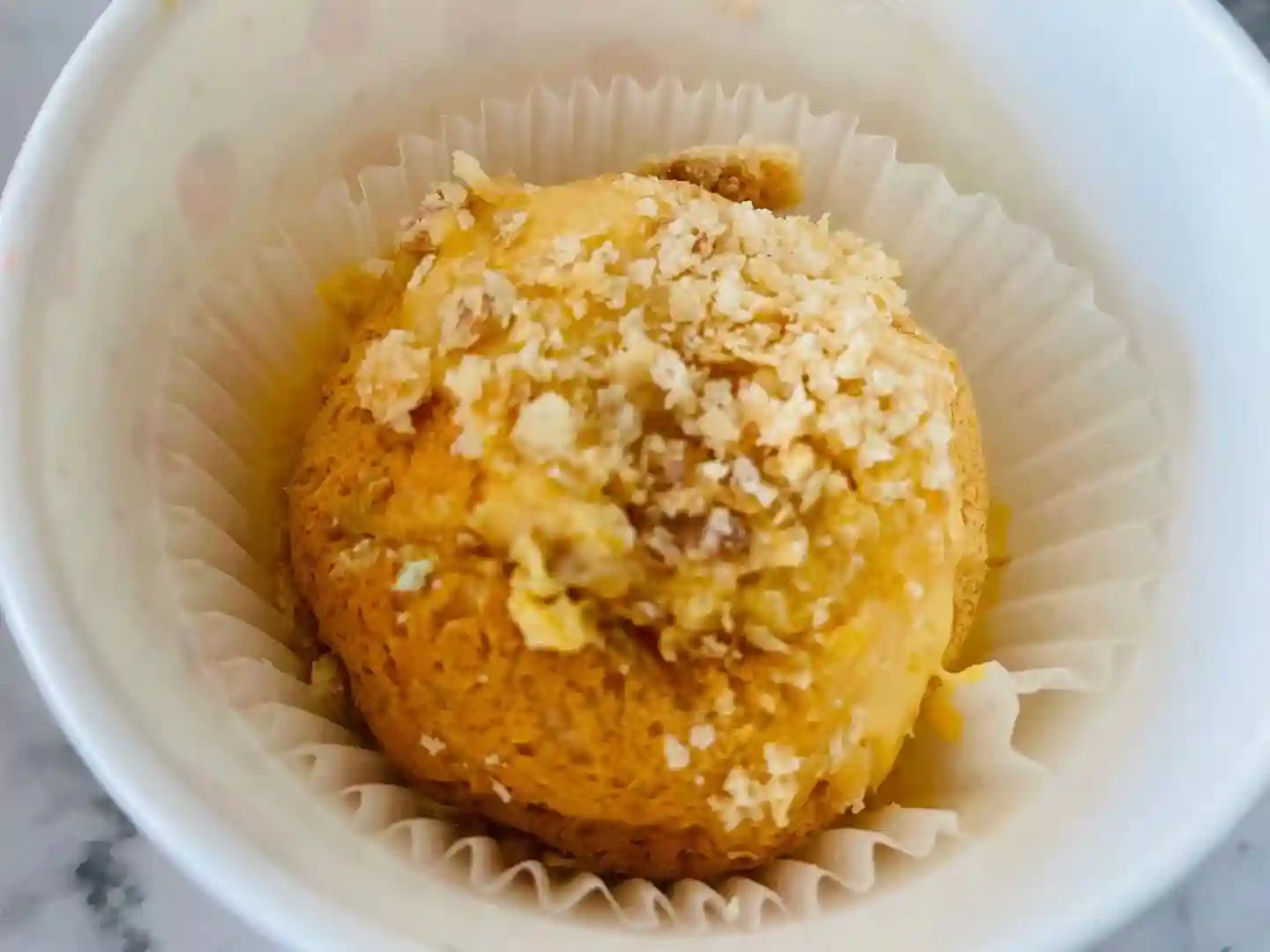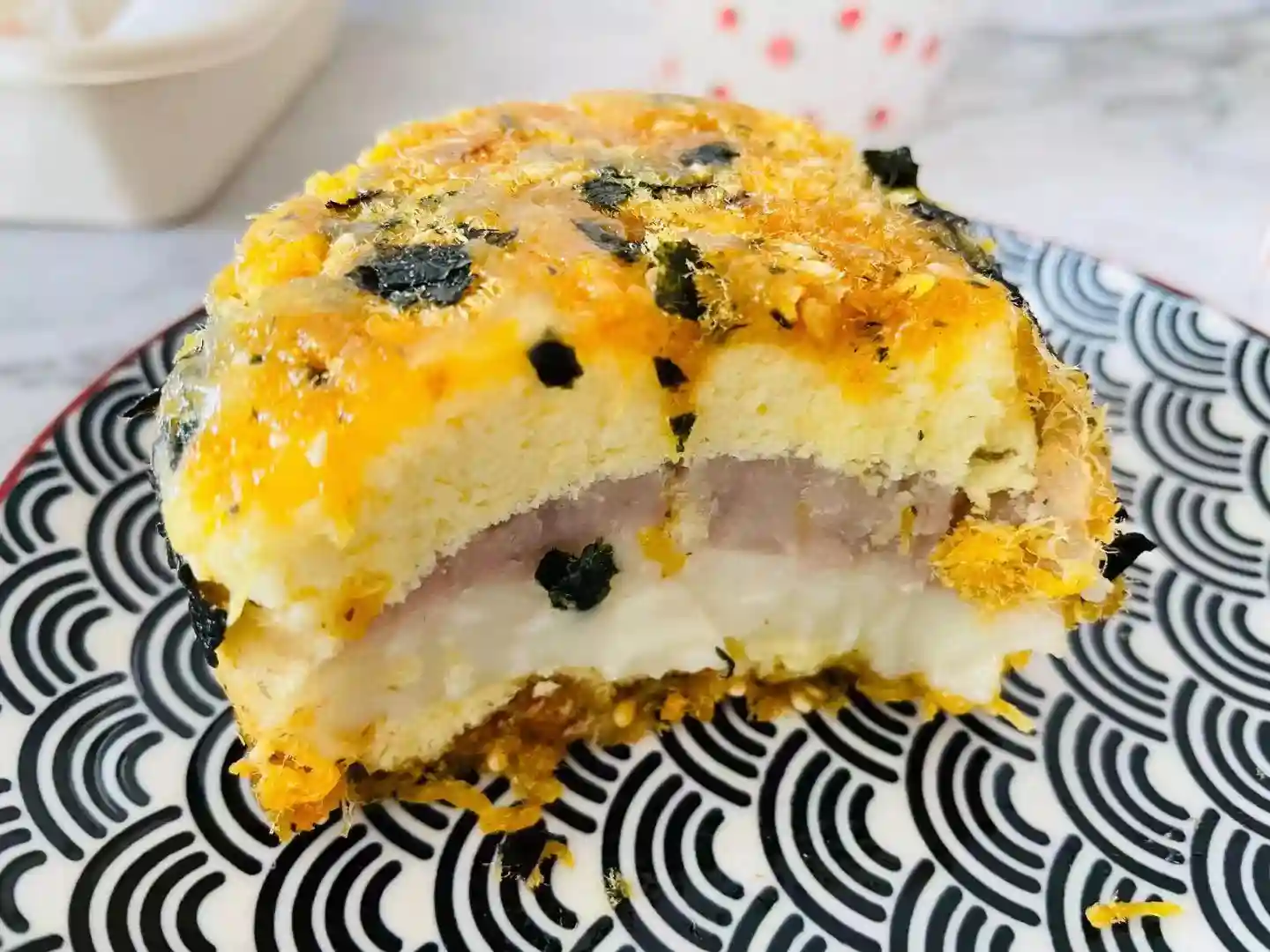 女孩子掌心大小的恐龙蛋,上面覆盖着咸蛋黄碎,看着特别像菠萝包的感觉,因为有咸蛋黄的融合,里面的奶油也显得没有那么甜腻了呢,总体来说是喜欢的味道。