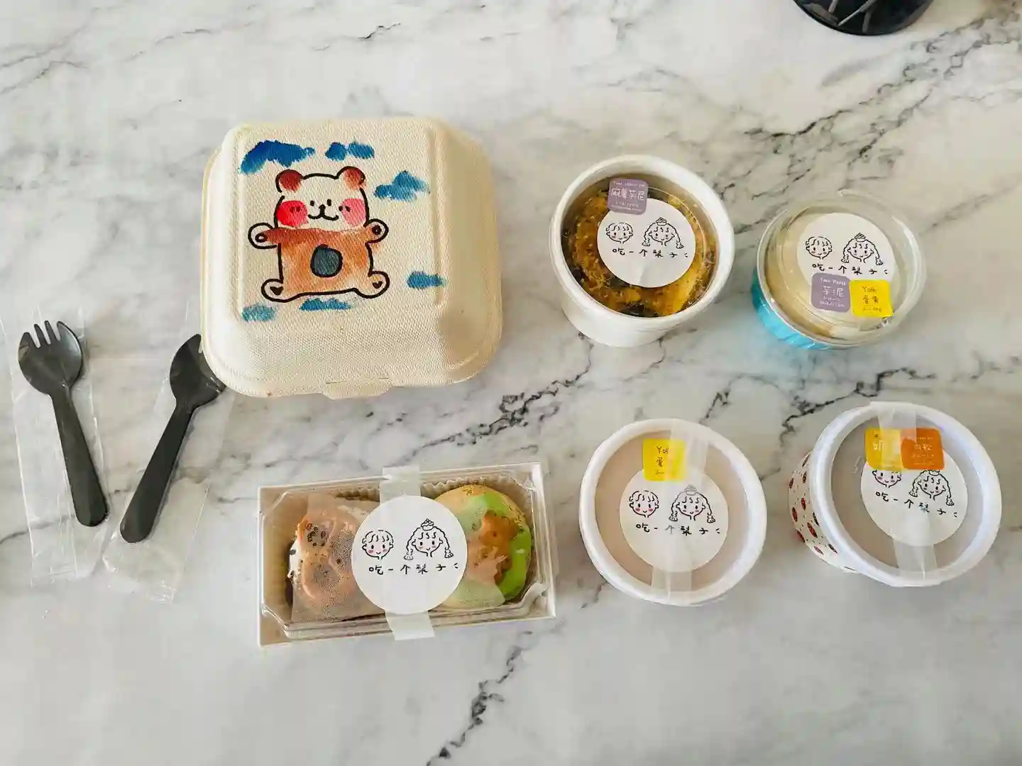 这家的蛋糕分为每日点心,麻薯恐龙蛋,雪媚娘,小贝三明治以及限定蛋糕这几个品类,这次一共订了7个蛋糕,每个蛋糕盒子都是可可爱爱,贴了专属的小男孩和小女孩的标签,尤其有个蛋糕的盒子还有手绘的小熊图案,太有意思了吧,不管是自己吃还是送人都是满满心意啊。