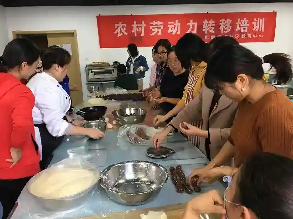 为提高农村居民的职业技能与就业能力,10月28日上午,麒麟社区教育中心邀请南京新雅慧职业培训学校的西点老师在学校六楼开展了免费的西式面点培训,辖区内约40位居民参加了这次培训。