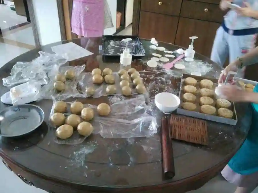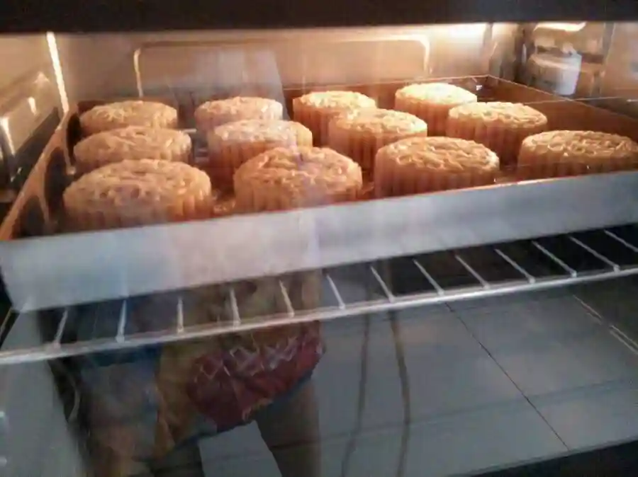 蛋黄莲蓉、红豆沙、黑芝麻、五仁月饼,一个都不能少,放入烤炉,准备大功告成~但素,做月饼真的是个体力活,好累呐~