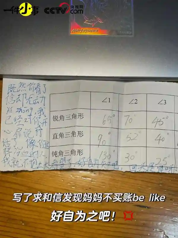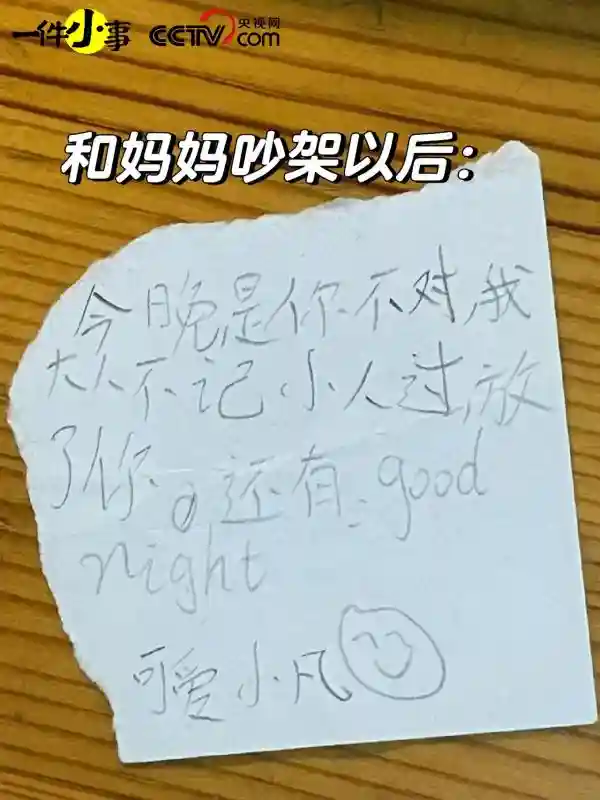 和妈妈吵架以后,她写道:“今晚是你不对,我大人不记小人过,放了你。”