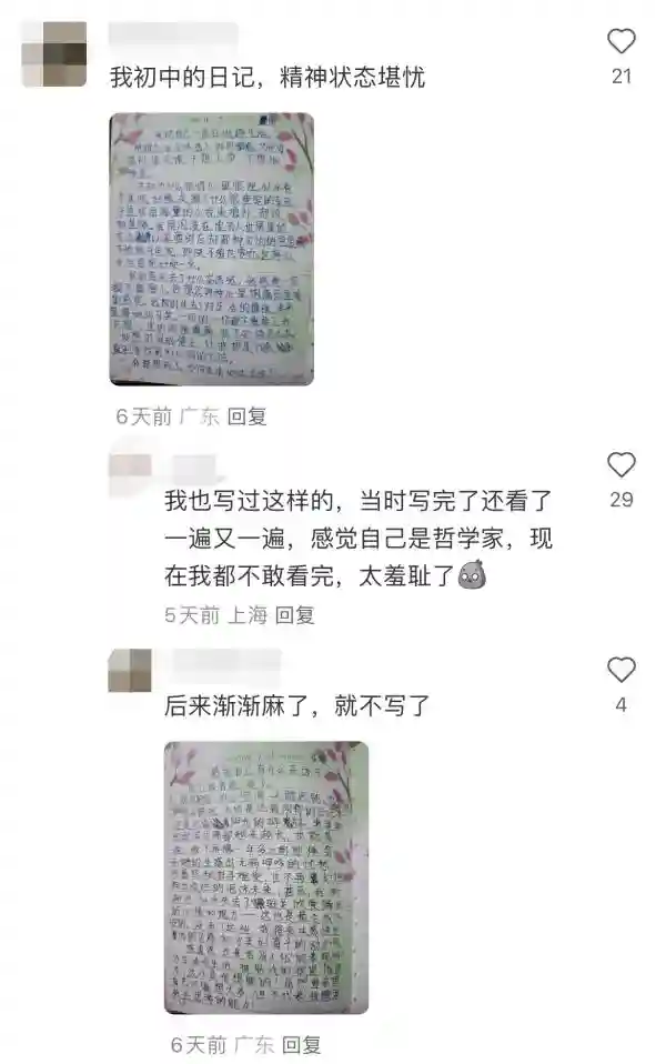 哪怕日记的内容有点幼稚甚至离谱,但想起当时的自己,也会莞尔一笑吧。