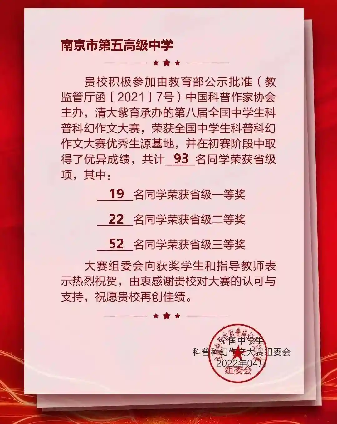 五中,老牌名校焕发新颜,在硬件设施全面升级的同时,迎来了教育理念革新、育人途径多元、办学资源优化的发展新机遇。因办学成果突出,学校在省、市各级各类考核、评比中屡获殊荣。五中,正以全新的面貌,迎接更辉煌的未来。