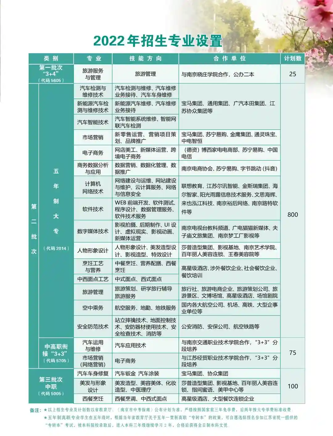 南京金陵高等职业技术学校(江苏联合职业技术学院金陵分院)是全日制公办职业学校,建校近百年。学校是国家级重点职业学校、国家教育改革发展示范学校、全国百强职业学校、全国现代学徒制试点单位、全国交通运输类示范专业点、江苏省首批现代化示范性职业学校、江苏省中职学校领航计划创建单位、江苏省职业教育教学管理30强学校、江苏省事业单位脱贫攻坚专项奖励记大功集体。自2018年起,学校连续四年获南京市职业学校办学质量评估特等奖第一名。