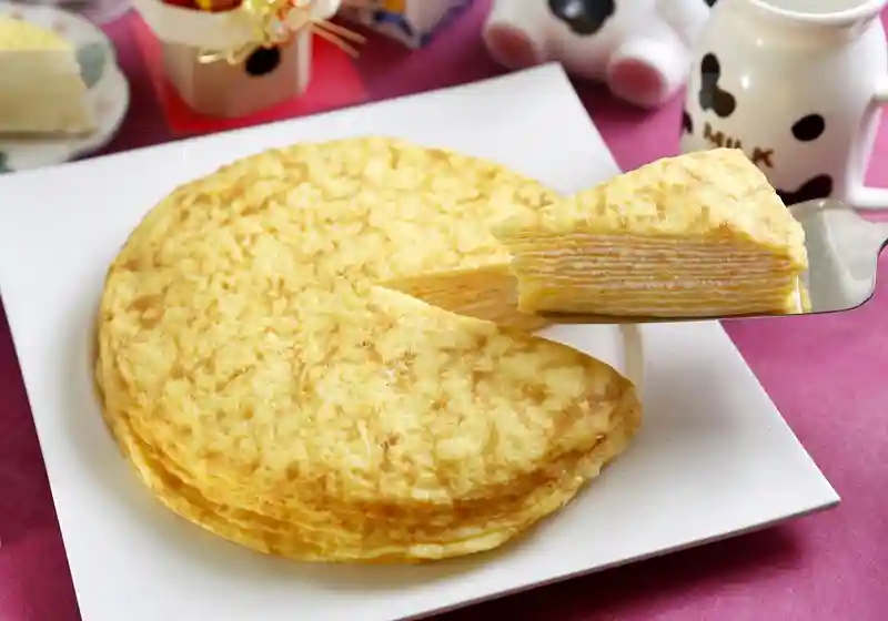 法式千层蛋糕其实并非「蛋糕体」,比起「蛋糕」更像堆栈的「薄蛋饼皮」,原文MilleCrepes即指「千层薄饼(可丽饼)」,是以一层薄饼、一层内馅堆栈而成。Crepes是源自法国的家常点心,口感软Q、轻薄如纸,不同于台式可丽饼的硬脆,要做出美味可口的薄饼,除了考验烘焙师傅的巧手,细心与耐心更是不能少。