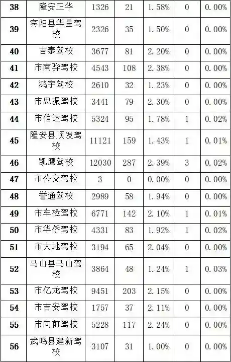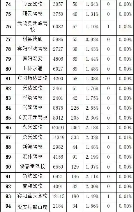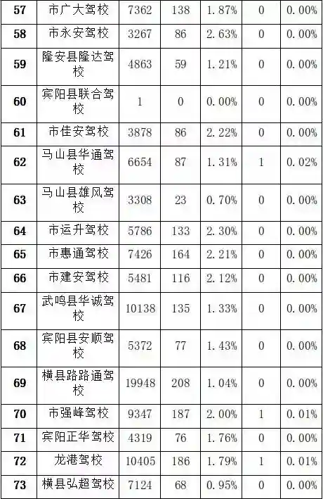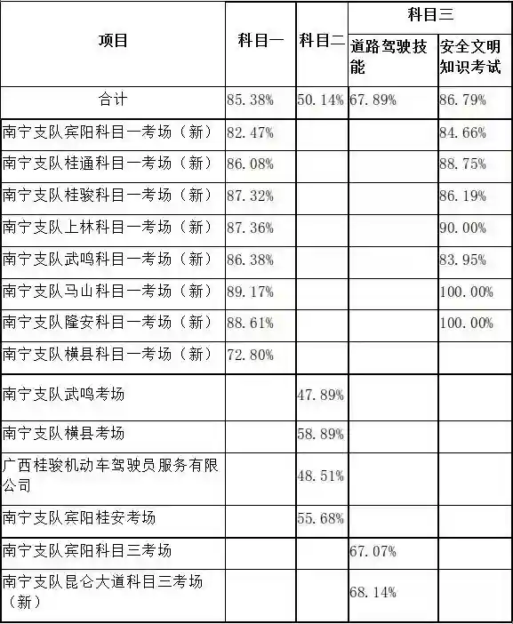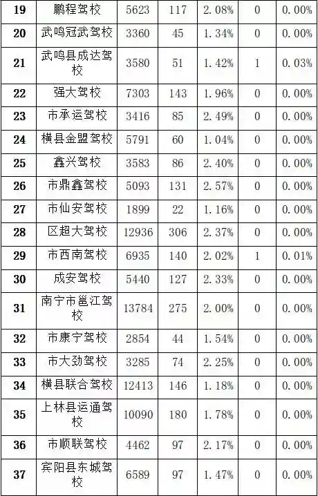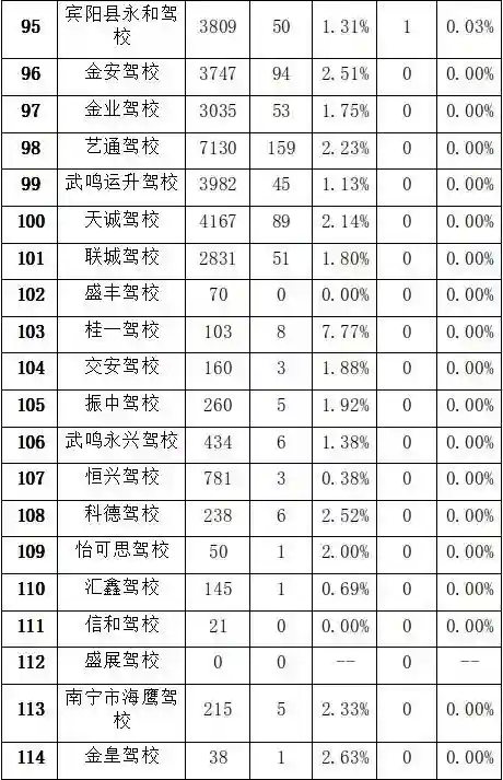 南宁市2018年4月-6月驾校考试合格率和培训质量排名