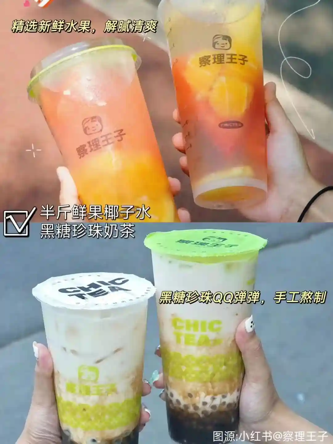 黑糖珍珠奶茶、半斤鲜果椰子水