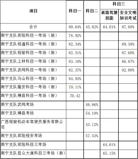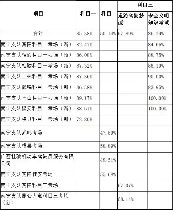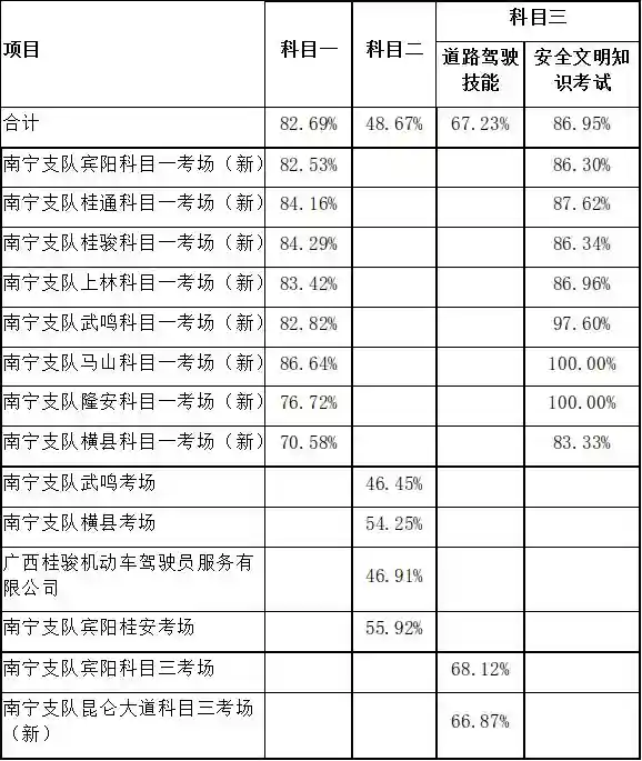 现向社会公布南宁市各科目考试合格率。