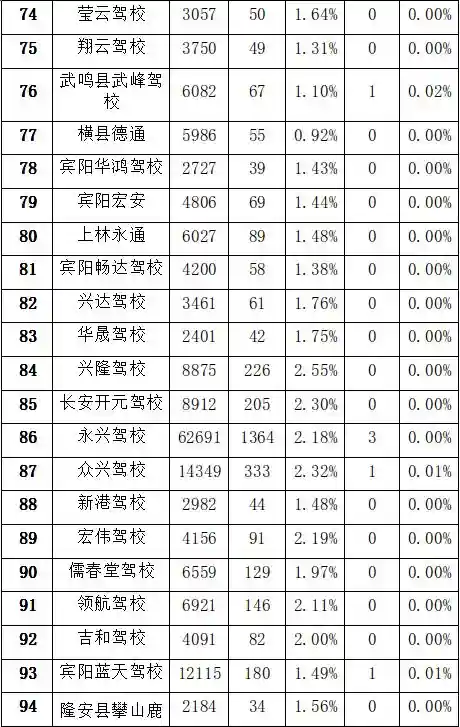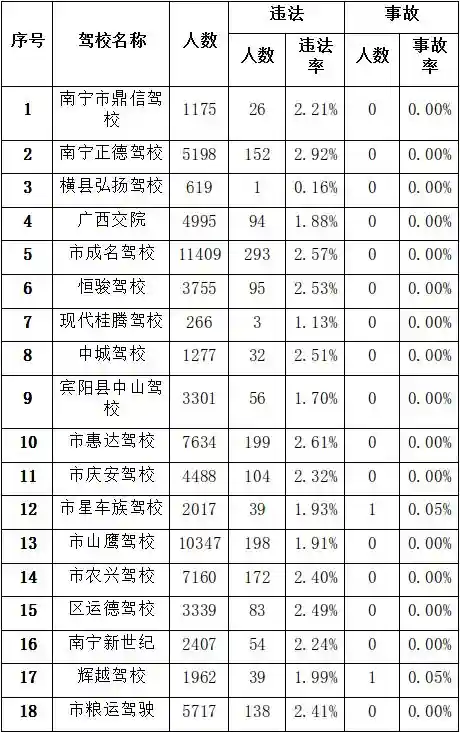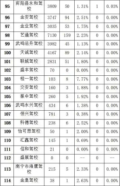 南宁市2018年4月-6月驾校考试合格率和培训质量排名