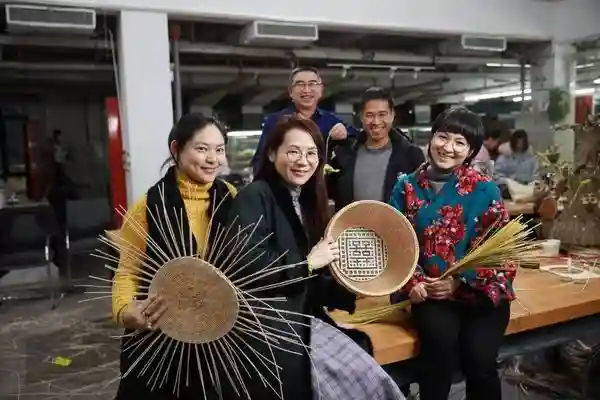 以上海美术学院为教学指导的公共艺术协同创新中心(PACC)与东浩兰生集团联合策划的“遇人见物”非遗老字号跨界合作项目,目前已经推出“凤凰自行车×遵义藤编”“哈氏糕点x赤水竹编”两款非遗跨界产品。其中与哈氏糕点“竹报平安”还是一款海派制作技艺和传统手工艺的“双非遗”项目。