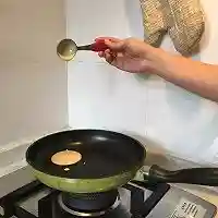 3.面糊距离锅底大约20厘米左右高度滴落,会形成自然的圆形。