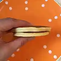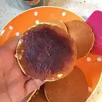 10.把红豆蓉涂在做好的松饼上面,两个饼夹上即可食用。